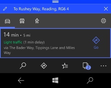In pratica questo aggiornamento aggiunge le novità portate di recente nella versione per PC e tablet di Mappe tra cui nuovi effetti trasparenza del Fluent Design (ad esempio nella schermata delle Impostazioni e nel pannello che compare quando si cercano indicazioni per raggiungere una nuova meta), nuove colorazioni per la classificazione del livello di traffico sulle strade (rosso=intenso, giallo=moderato, verde=scorrevole) e tempistica degli itinerari con i minuti di ritardo in base al traffico.